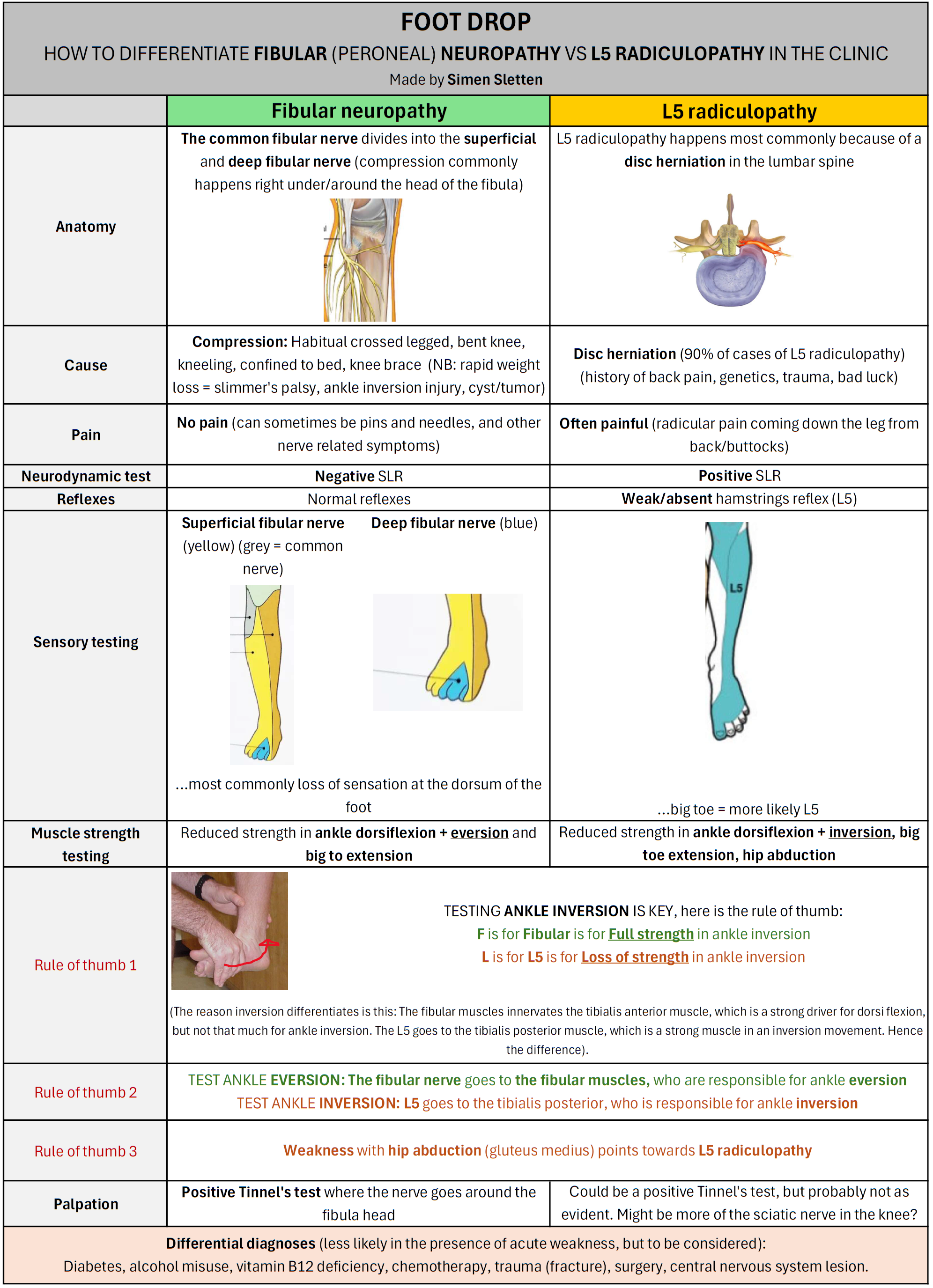 Foot drop: Fibular (peroneal) neuropathy VS L5 radiculopathy